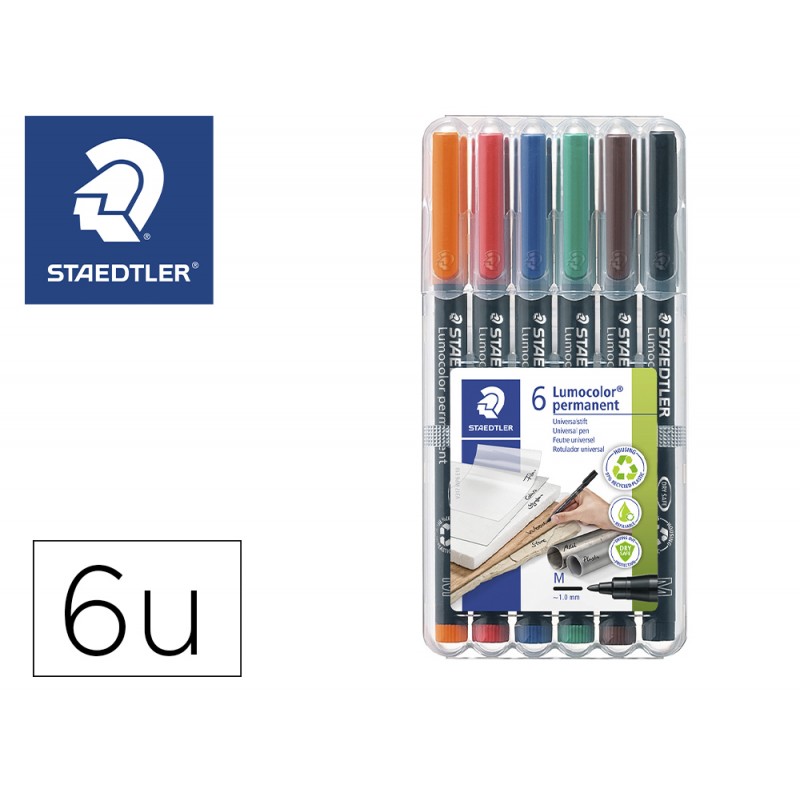 Rotulador universal para uso en transparencias y en casi todas las superficies. Hasta dos días destapado sin secarse. Excelente resistencia al borrado y al agua en casi todas las superficies. Secado rápido. Con clip. El cuerpo en polipropileno garantiza una larga duración del producto. Punta superfina redonda de fibra. Permanente.
