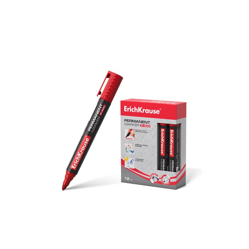 Marcador permanente P-400Marcador permanente con punta en forma de bala, adecuado para escribir y marcar en casi todas las superficies: papel, carton, vidrio, plastico, porcelana, ceramica, madera, etc. Tiene el cuerpo redondo y tapa con clip del color de la tinta. El color de la tapa y del tapon coincide con el color de la tinta. La punta en forma de bala es resistente a los danos y al desgaste. El ancho de escritura de 0,8-2,2 mm. La tinta a base de alcohol es resistente al agua, la luz y los rayos ultravioleta, se seca rapidamente despues de la aplicacion, no es toxica, no contiene xileno ni tolueno. Tiene una vida util de 5 anos.