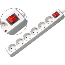 Regleta protectora de tomas con interruptor de seguridad iluminado. Con seguridad para niños, obturadores en los agujeros. Ideal para usar en el hogar y la oficina o en espacios donde se requiera el uso de muchos aparatos eléctricos. Resistencia de 1000 julios. Longitud del cable: 1,4 m.