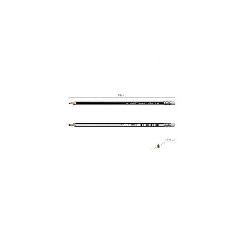 Un clásico lápiz hexagonal de mina negra con un borrador de madera seleccionada. Grado de dureza: HB. Una impregnación especial para madera y un encolado de plomo sólido proporcionan una alta resistencia a la rotura. La madera blanda y la perfecta alineación de la mina facilitan el afilado con un uso económico del lápiz. El cable de 2,2 mm de diámetro no raya el papel y no se desmorona. La goma de borrar de dureza media está fabricada con una goma termoplástica (TPR) moderna, ecológica e hipoalergénica que no contiene PVC. Longitud del lápiz: 188 mm.