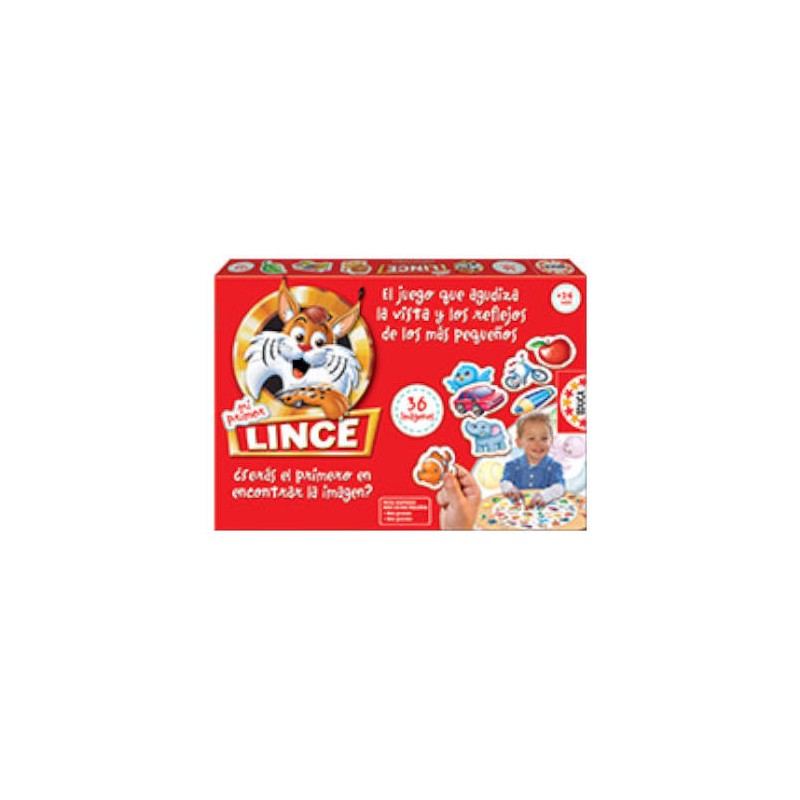 El apasionante juego de competición El Lince en una versión adaptada para los más pequeños (2-4 años). Cada jugador deberá encontrar en el tablero las imágenes cogidas al azar. Refuerza la memoria visual y los reflejos. CONTENIDO: - 1 tablero - 36 fichas con imágenes - 1 caja montable - Instrucciones.