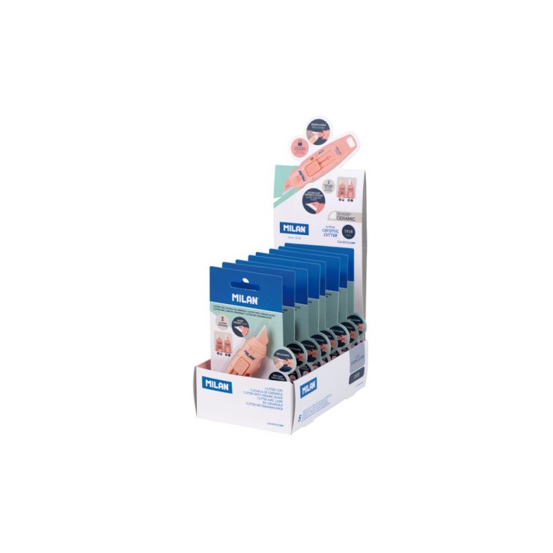Cúter con hoja de cerámica reemplazable. Diseño STICK, serie 1918 en color rosa. Cuchilla con protector y sistema de bloqueo de seguridad. Botón deslizador con dos posiciones. De pequeño tamaño, tipo ""de bolsillo"". Con su forma ergonómica, es perfecto para las manualidades o para abrir paquetes. La hoja cerámica corta distintos tipos de material. Dispone de un ojal para poder ser colgado. Hojas cerámicas de recambio disponibles. La caja contiene 8 blísters.