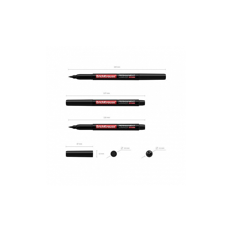 Un marcador permanente fino universal apto para escribir y marcar en casi todas las superficies: papel, cartón, vidrio, plástico, loza, cerámica, madera, etc. El marcador tiene un cuerpo redondo y una tapa de color. La tapa y el color del tapón coinciden con el color de la tinta. Una punta en forma de bala es resistente al daño y al desgaste. El ancho de escritura es de 0,5 a 1,2 mm. La tinta a base de alcohol es impermeable, resistente a la luz y resistente a los rayos ultravioleta, se seca rápidamente después de la emisión, no es tóxica, no contiene xileno ni tolueno. La vida útil es de 5 años. La longitud máxima de escritura es de 670 ?.