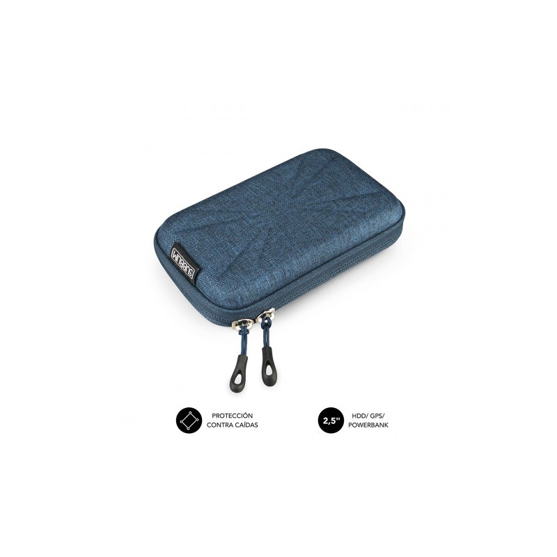 HDD Business Case es una funda rígida dedicada a proteger tu Disco Duro o Power Bank. Su diseño y materiales son elegantes y modernos.\nCompatible con la mayoría de los discos de 2.5 '''' (dimensiones internas máximas de 13.5 x 8.4 x 2 cm).\nSu estructura consiste en una carcasa de EVA (plástico muy rígido) y espuma en el interior para una protección óptima contra los golpes.\n\nSu diseño permite que esta cubierta absorba los golpes en caso de caída.\n\nEn el interior, una banda elástica asegura tu disco duro durante el transporte. También encontrarás un bolsillo para almacenar el cable de alimentación o una llave USB, por ejemplo.\n\nEsta funda tiene un tamaño compacto, puede guardarla fácilmente en su bolso o en un cajón de su escritorio.\n\nOfrecemos esta funda en 3 colores elegantes: negro, gris y azul. No dudes en utilizar diferentes colores si tienes varios discos duros para proteger y así distinguirlos más rápidamente.\n\nDoble Tirador\nSistema de doble tirador para que te resulte mucho más sencillo su apertura y rápido uso.\n\nResistente y Ligera\nFabricada con ABS en su interior que ofrece una alta protección además de ser muy ligera.\n\nInterior\nInterior reforzado y suave para proteger tu dispositivo. Bolsillo de malla para guardar accesorios.