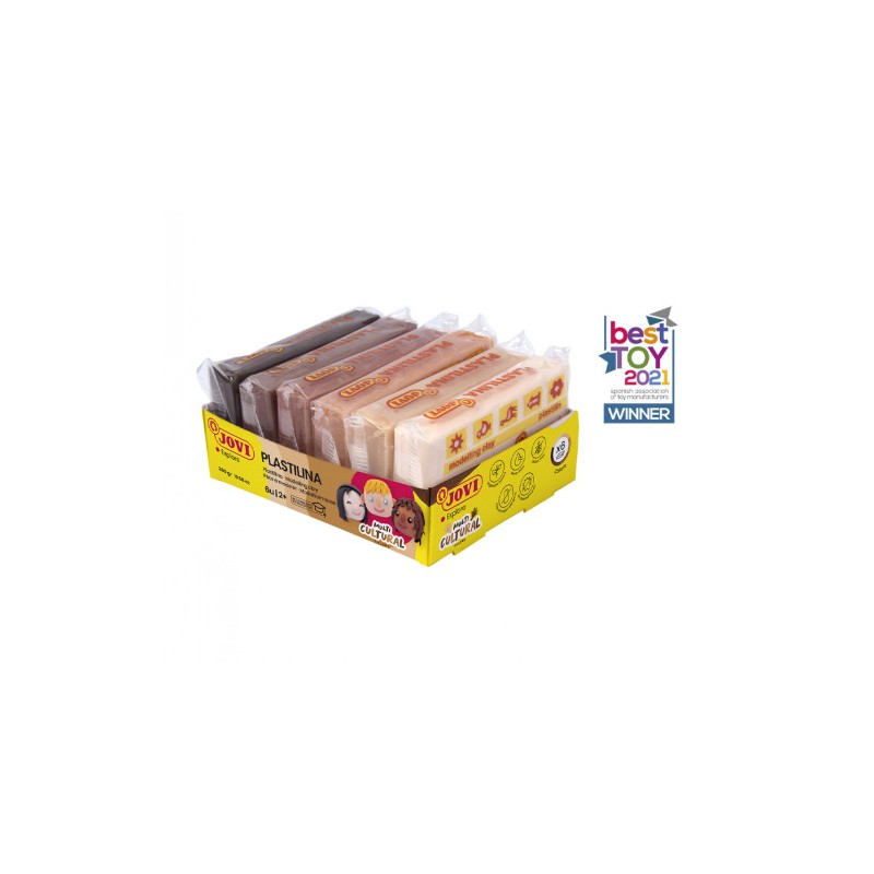 MULTICULTURAL Colors: nueva gama de colores de Plastilina.6 nuevos colores para recrear las diferentes tonalidades del mundo.La forma más divertida de modelar y de expresarse del niño.Ideal para fomentar la igualdad y la diversidad cultural en el aula.3 formatos adaptados a las necesidades de la distribución y la escuela.La PLASTILINA JOVI es una pasta para modelar 100% vegetal para jugar, en divertidos colores, muy moldeable, adecuada a partir de los 2 años, sin gluten y que nunca se seca.A diferencia de las plastilinas minerales, permite hacer figuras con mayor volumen .Además podrás jugar sin parar, porque nunca se seca.Se moldea y desmolda con facilidad. Ideal para realizar figuras en volumen. Su versatilidad también admite el uso de moldes y modeladores, así como otras técnicas de pintado con PLASTILINA.