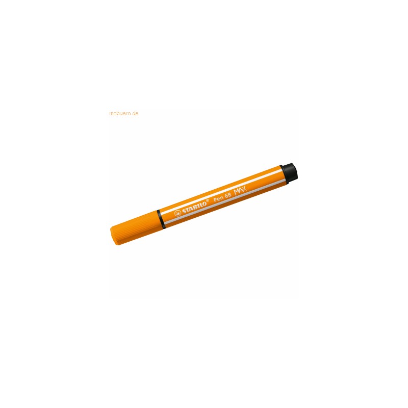 Rotulador premium con punta biselada gruesa STABILO Pen 68 MAX ideal para colorear grandes áreas y para dibujar contornos exactos. Hasta 12 horas de protección contra secado sin gorra. Color de escritura de los útiles de escritura: naranja, inodoro.Colores brillantes y ricos, perfectamente combinados con la paleta de colores Pen 68 y point 88 .Material del eje: Plástico.Tipo de fluido de escritura: Tinta a base de agua - también ideal para efectos de acuarela. Diseño del cuerpo: Color del cuerpo: Color de escritura con franjas blancas en los bordes. Tipo de punta de escritura: Tipo de punta: punta de fibra (cuña), ancho de trazo: 1 + 5 mm.