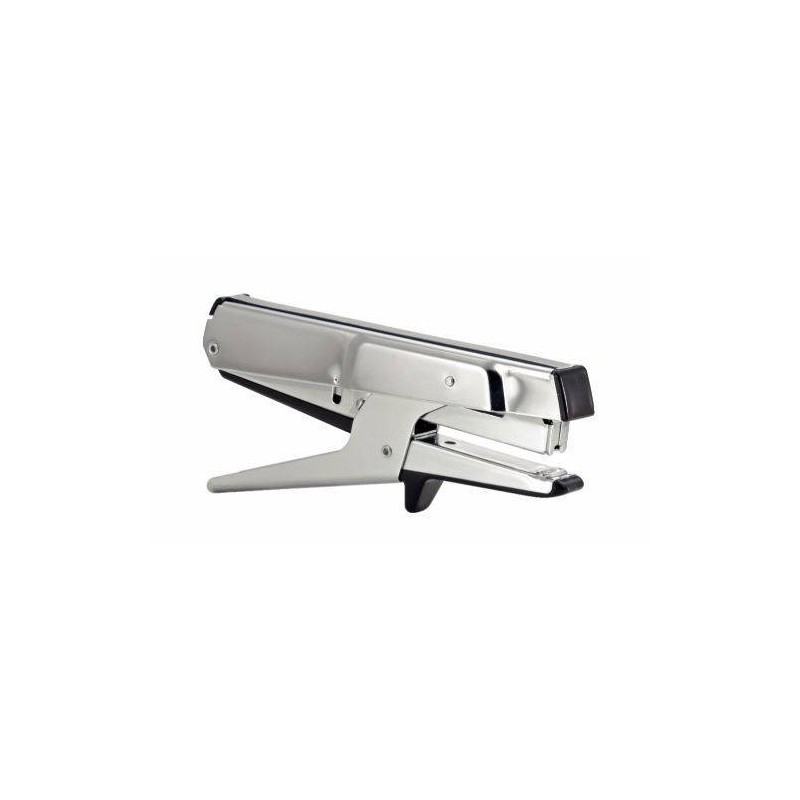 Grapadora de tenaza de alta calidad con un moderno diseño de color metálico. Ideal para uso doméstico y de oficina. - Extraegrapas integrado: no- Capacidad de grapado: 2,0 mm/20 hojas (papel 80 grs.)- Electrica: no- Tipo de grapas: 100x 23/6- Carga: Superior- Tipo de grapado: Cerrado- Profundidad entrada papel: 54 mm- Peso: 0,24
