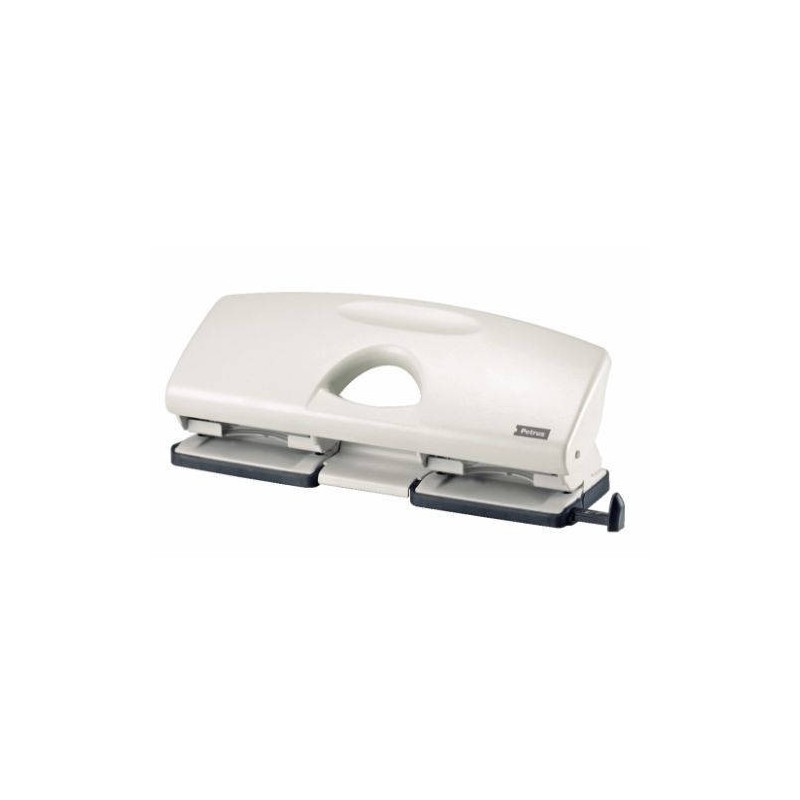 Taladro de 4 orificios mod. 405 de PetrusPara perforar hojas de forma rápida y sencilla para carpetas con mecanismo de 4 anillas. - Perfora hasta 25 hojas de papel (80 g/m²).- Alineación fácil de las hojas.- Base antideslizante que no raya.- Cubeta con bisagra fácil de vaciar.