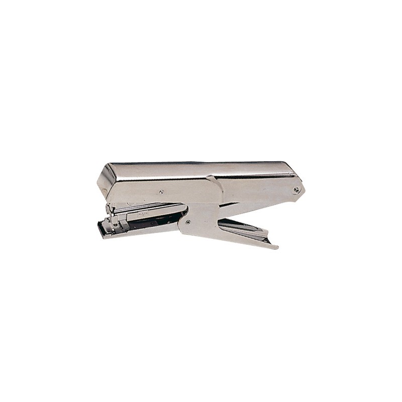 Grapadora de tenaza de alta calidad con un moderno diseño de color metálico. Ideal para uso doméstico y de oficina. - Extraegrapas integrado: no- Capacidad de grapado: 2,5 mm/25 hojas (papel 80 grs.)- Electrica: no- Tipo de grapas: 100x 22/6, 24/6 o 140x 26/6- Carga: Frontal automática- Tipo de grapado: Cerrado y abierto- Profundidad entrada papel: 50 mm