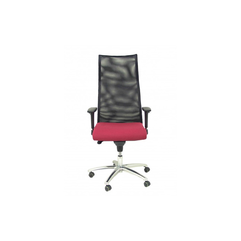 PIQUERAS Y CRESPO Modelo Sahuco - Sillón de dirección ergonómico con mecanismo sincro y regulable en altura - Respaldo de malla transpirable y asiento tapizados en tejido BALI color granatePIQUERAS Y CRESPOSillón de dirección ergonómico con mecanismo sincro y regulable en alturaSillón de dirección de diseño y buenísima calidad, apta para cualquier ambiente de oficina. La malla del respaldo la dota de una comodidad superior a los sillones de su misma gama,al ser fabricado en España, los materiales son de primera calidad. Apto para uso intensivoDetalles técnicosRespaldo ergonómico y de malla transpirable para una mayor adaptación y transpirabilidad de la espaldaAsiento ergonómico y acolchado para una mayor comodidad del usuario. Relleno de espuma de 8cm de grosor y 25 kg/m3 de densidadRespaldo de malla de nylon color negro y asiento en tejido BALI color granateEstructura de tubo oval de 30x15 cm. Pared de 1,5 mm. Pletina de 30x4 cmBrazos regulables en altura de poliuretano color negro y acabado cromadoMecanismo sincro multiposición con regulador de la presión del sincro(permite la regulación del asiento y el respaldo de manera independiente)Regulable en altura mediante cilindro de gas de 10 cm(siendo su altura en la posición más baja de 50 cm y la más alta 60 cm)Giratoria 360ºGas cromadoBase de aluminio pulido de alta resistencia de 5 radios y 70 cm de diámetroRuedas de nylonOtros detallesFavorece una buena postura integral para evitar posibles problemas de espaldaErgonómicaFABRICACIÓN ESPAÑOLAInstrucciones de montaje incluidasFácil montajePara pedidos de gran volumen, póngase en contacto con nosotros para consultar disponibilidad
