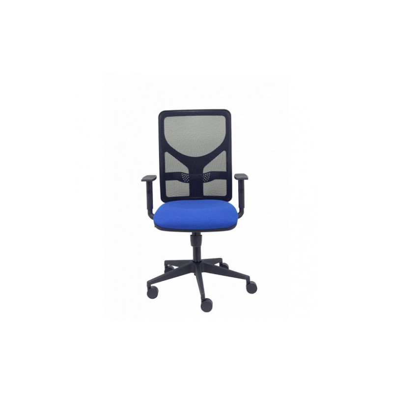 Silla de oficina ergonómica con mecanismo sincro, brazos regulables y ajustable en altura.La unión perfecta entre diseño y ergonomía. Incluye refuerzo lumbar. Ideal para trabajar durante varias horas puesto que ayuda a reducir las lesiones derivadas de malas posturas. Ideal para la oficina y para el hogar. Fabricada integramente en España, lo que es sinónimo de calidad.Respaldo ergonómico para una mayor adaptación de la espalda. Respaldo de malla transpirable Asiento ergonómico para una mayor comodidad del usuarioAsiento interior de PVC con refuerzo panal. Asiento exterior de PVC de 20 mm de grosorRespaldo de malla transpirable en color negroAsiento tapizado en tejido BALI color azul.Brazos regulables en alturaMecanismo sincro que permite la regulación del respaldo y el asientoRefuerzo lumbarRegulable en altura mediante cilindro de gas de 10 cmGiratoria 360ºBase poliamida de alta resistencia de 5 radios y 60 cm de diametro, en color negroRuedas de nailonUso intensivo