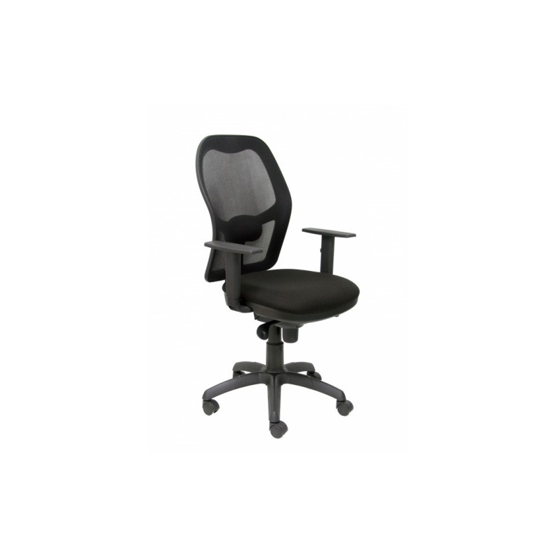 Silla de oficina ergonómica con mecanismo sincro, brazos regulables y ajustable en altura La unión perfecta entre diseño y ergonomía. Incluye refuerzo lumbar. Ideal para trabajar durante varias horas puesto que ayuda a reducir las lesiones derivadas de malas posturas. Ideal para la oficina y para el hogar. Fabricada integramente en España, lo que es sinónimo de calidad Detalles técnicos Respaldo ergonómico para una mayor adaptación de la espalda. Respaldo de malla transpirable Asiento ergonómico para una mayor comodidad del usuario. Asiento interior de PVC con refuerzo panal. Asiento exterior de PVC de 20 mm de grosor. Respaldo de malla transpirable en color negro Asiento tapizado en tejido BALI color negro Brazos regulables en altura Mecanismo sincro que permite la regulación del respaldo y el asiento por separado Refuerzo lumbar Regulable en altura mediante cilindro de gas de 10 cm Giratoria 360º Telescópico color negro Base poliamida de alta resistencia de 5 radios y 60 cm de diametro, en color negro Ruedas de nylon Uso intensivo Otros detalles Favorece una buena postura integral para evitar posibles problemas de espalda .