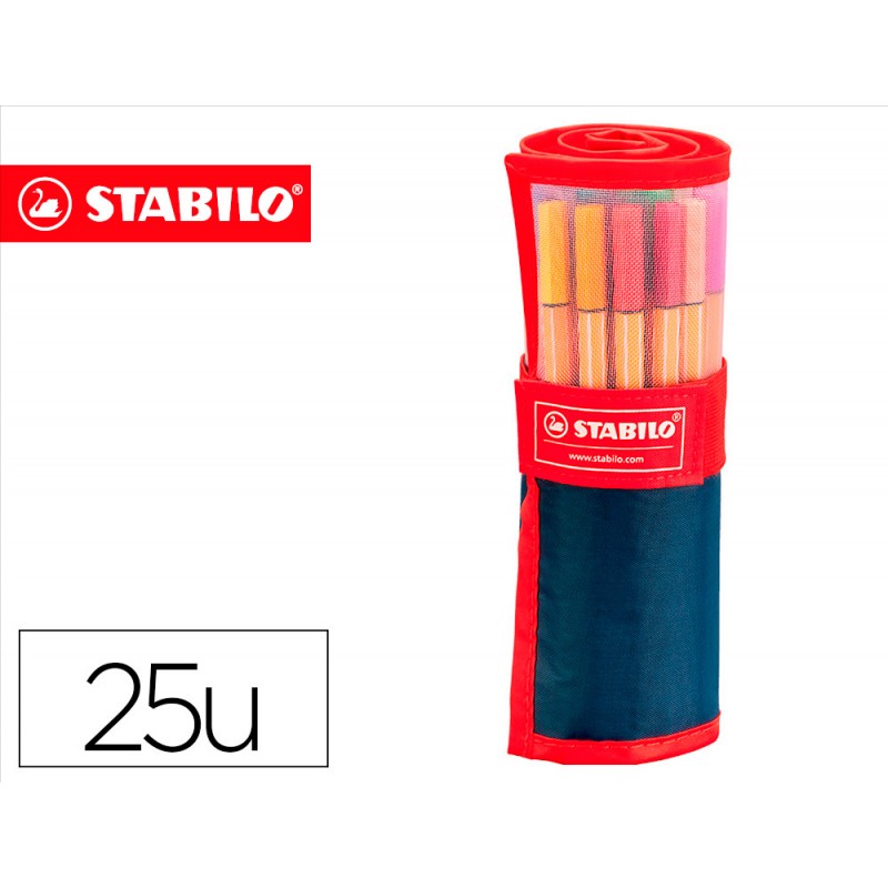 Rotulador con punta de fibra y refuerzo metálico. Diseño único que ha permanecido en el tiempo hasta obtener un estatus de mito. Ofrece una escritura fina, apta para reglas y plantillas. Tinta a base de agua. Tapón ventilado. Resistente al secado sin tapón. Colores surtidos. Trazo de 0,4 mm. Estuche de 25 unidades.