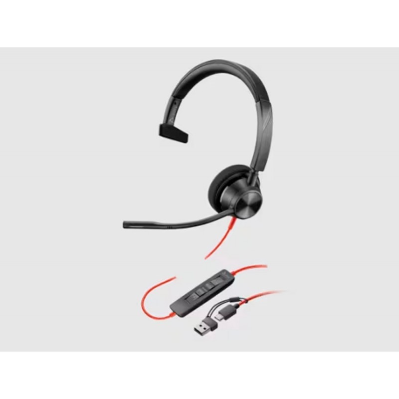 El auricular monoaural Blackwire 3310 cuenta con un audio de calidad y cancelación de ruido en su micrófono flexible. Tiene un diseño muy cuidado con un precio realmente ajustado. Ofrece eficiencia y ergonomía, asegurando su comodidad en jornadas completas de trabajo. Se conecta a PC a través de USB / USB-C y a otros dispositivos que admiten USB-C. Opción Standard o Microsoft TEAMS. Diadema acolchada. Controles de llamada en el cable. Compatible con Windows o Mac OS. Respuesta de frecuencia de recepción de audio de PC: Dynamic EQ optimizado para telefonía de voz de banda ancha para PC de hasta 6.8kHz o para multimedia de 20Hz a 20KHz. Protección auditiva SoundGuard: limitación acústica de protección contra picos de sonidos superioriores a 118 dBA. El soporte G616 limita el nivel a 102 dBSPL. Micrófono flexible con cancelación de ruido. Respuesta de frecuencia de micrófono de audio para PC100Hz a 10kHz optimizado para audio de banda ancha para PC dekHz. Control remoto de llamadas Llamar