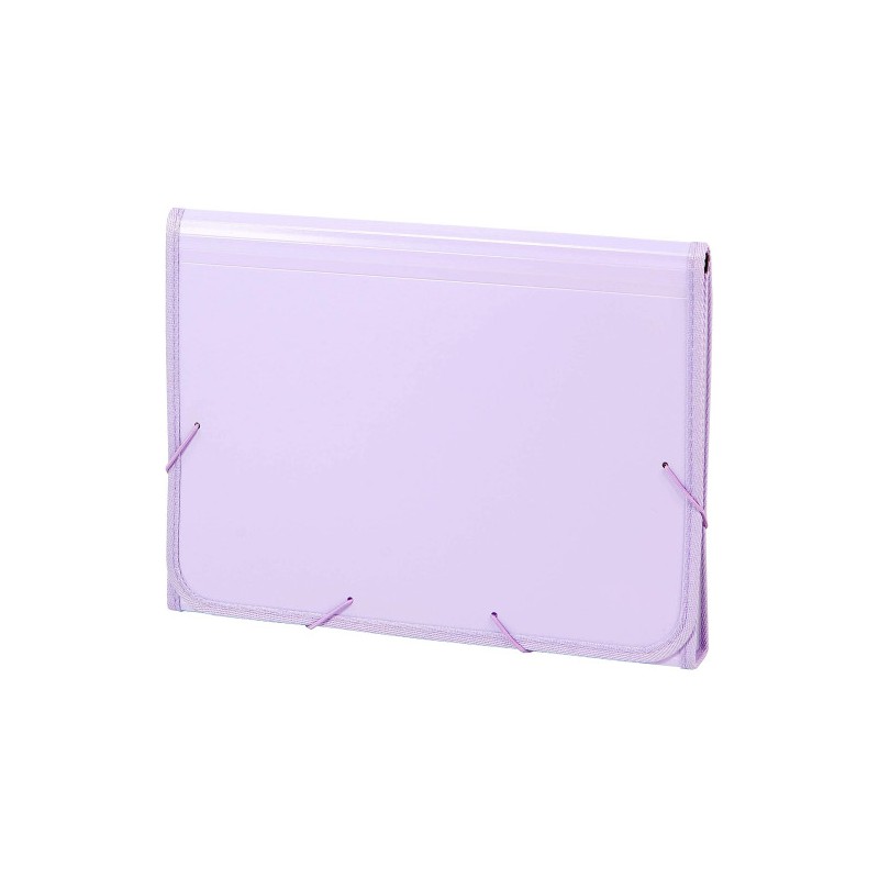 Acordeón de polipropileno Soft reforzado con ribete de tela en todo su contorno color a juego. Color malva.Con 13 departamentos interiores de polipropileno transparente con fuelle tipo acordeón. Incluye etiquetas para identificar el contenido de cada departamento.Goma redonda de cierre del mismo color.Apropiado para todo tipo de documentos tamaño Folio.