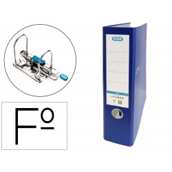 Forrados exteriormente con polipropileno e interiormente con papel. Cantoneras metálicas y sistema rado. Tarjetero en el lomo y etiqueta intercambiable. Lomo ancho de 80mm. Archivador de palanca color lomo 80mm Elba Rado Top folio azul.