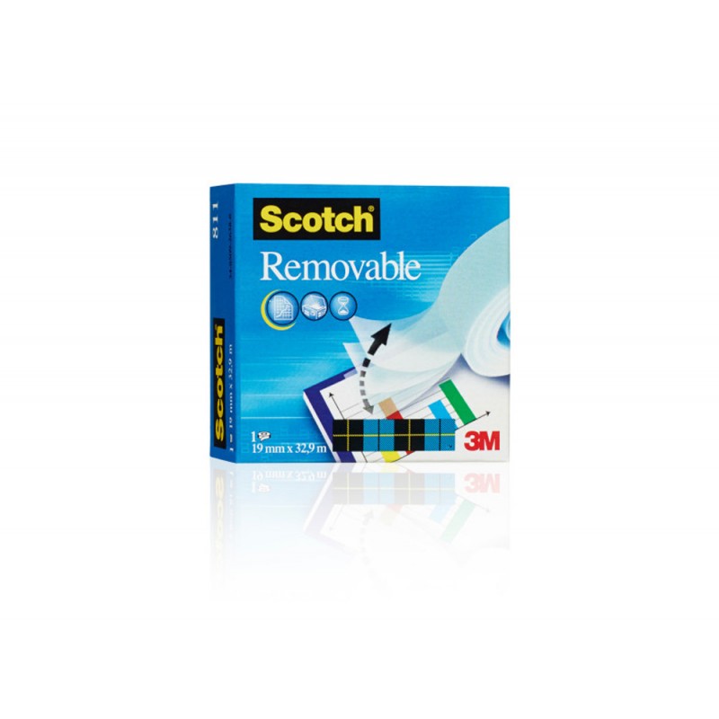 Con las mismas características que la cinta adhesiva Scotch®Magic'''''''', es excelente para realizar montajes o maquetaciones con la flexibilidad y tranquilidad de poder corregir cuando lo necesite porque se pega y despega con facilidad. Medidas: 33 m x 19 mm.