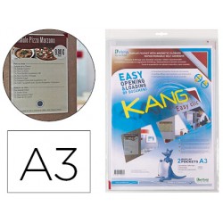 Funda en PVC con adhesivo reposicionable en el dorso y cierre por esquina imantada roja. Capacidad: hasta 10 hojas de 80 g/m². Se lee por ambas caras. Ideal para superficies lisas: escaparates, puertas, pared, metal, etc. No deja residuos. Vertical / horizontal.