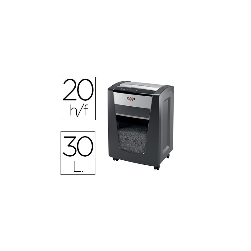 Rexel Momentum X420. Tipo de triturador de papel: Corte cruzado, Capacidad de la cesta: 30 L, Capacidad de cesto: 275 hojas. Voltaje de entrada AC: 220 - 240 V, Frecuencia de entrada AC: 50 Hz, Corriente: 2 A. Certificación: CE. Ancho: 406 mm, Profundidad: 320 mm, Altura: 594 mm