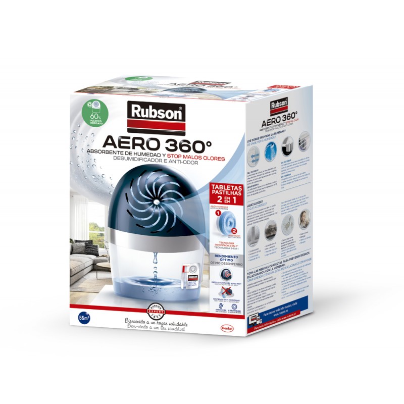 Deshumidificador con tecnología en tableta. Absorbe el exceso de humedad hasta con un 40% más de eficacia respecto al resto de deshumidificadores y neutraliza los malos olores. Funciona sin electricidad. Recarga tableta 2 en 1. Cristales ultractivos para una mayor absorción de la humedad y tecnología antiolor patentada. Ideal para espacios de hasta 22 m²/55 m³. Medidas: 189 x 118 x 241 mm. Peso: 0,45 kg.