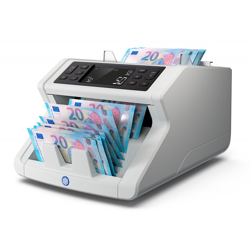 Velocidad contadora de 1 000 billetes/minuto. Para todas las divisas. Formas de detección: UV y tamaño. Alarma para billetes sospechosos o de tamaño diferente. Adición y función de fajos. Fácil de utilizar. Adecuado para la detección de los billetes actuales y nuevos. Inicio automático y parada automática. Amplia pantalla LCD. Carga trasera. Amplia tolva para 300 billetes. Medidas: 250 x 295 x 184 mm. Peso: 5,8 kg.