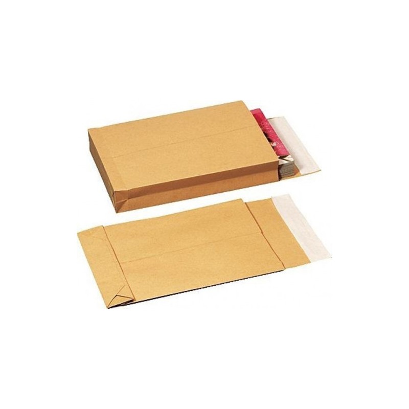 Caja con 250 bolsas formato fuelle 3 lados en tamaño DIN B4 Folio, en papel Kraft marrón, con auto cierre y tira de silicona.