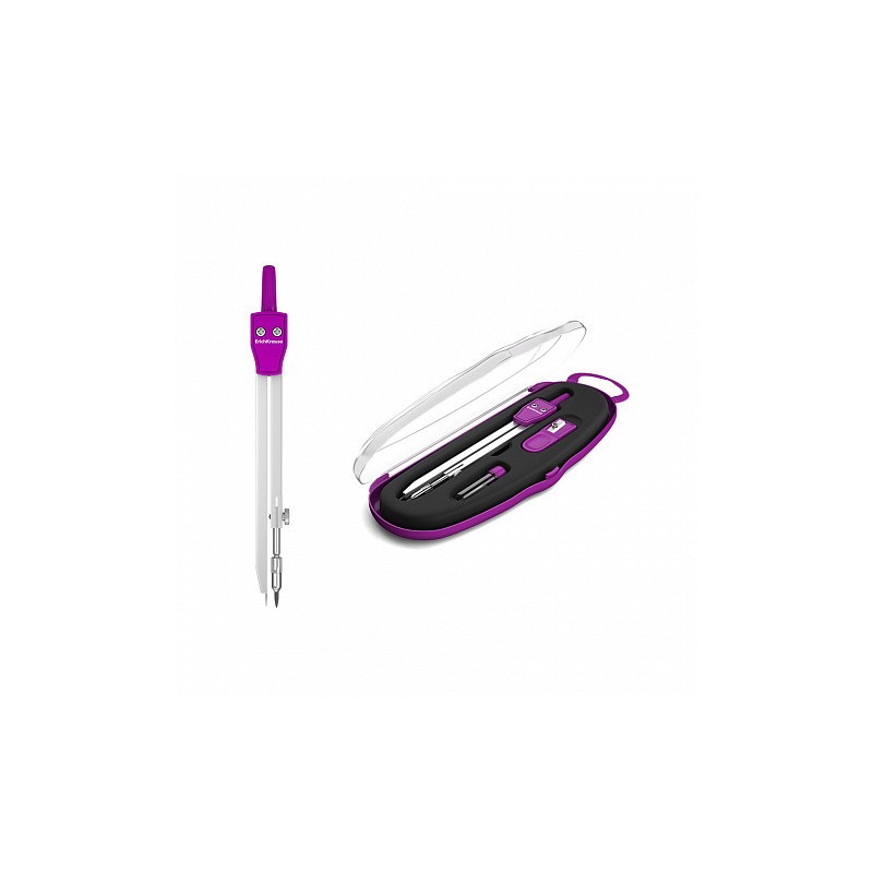 Conjunto de instrumentos ErichKrause® School 135mm.,3 uds. Compas metalico. Radio maximo - 21 cm. El juego incluye un afilador y una mina de recambio en el estuche de plastico. Presentacion en brillantes colores neon. Empacado en una caja de plastico con colgador.