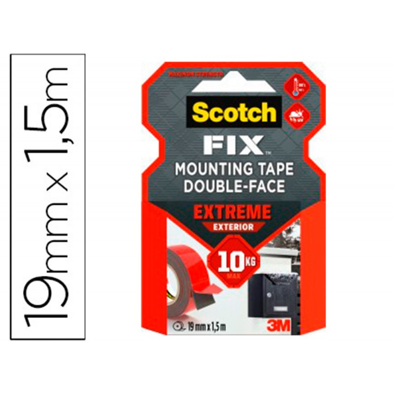 Resistente a cualquier temperatura. Soporta 1 kg / 1 tira de 15 mm. Con adhesivo en ambas caras, es ideal para fijar objetos más pesados, como buzones y ganchos sobre superficies lisas y rugosas. Indicada para interior y exterior. Super resistente. Color blanco. Medidas: 1,5 m x 19 mm.