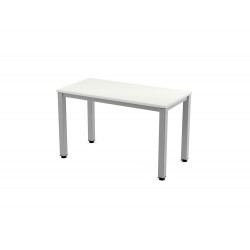 Estructura realizada en tubo de acero de 40x30mm de sección fijados entre ellos y a los 4 pies mediante 4 piezas de aluminio fundido. Los pies son de tubo de acero de 60x60mm de sección e incorporan sistema de regulación de altura hasta 50mm. Todo ello pintado según modelo. El tablero es de melamina de 25mm de grosor color según producto canteado en PVC de 2mm del mismo color.