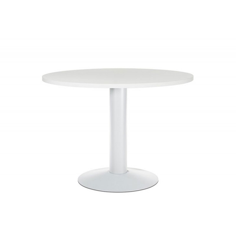 MESA DE REUNION ROCADA SERIE MEETING 3005ATW PATA METALICA BLANCO SOBRE DE 100 CM DIAMETRO MELAMINA BLANCO