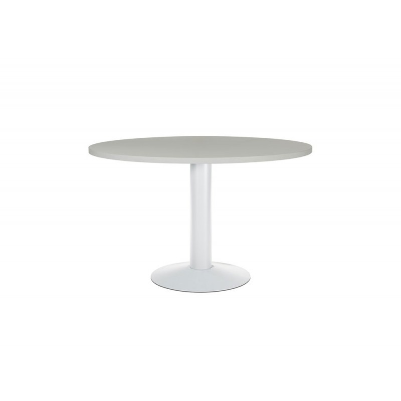 MESA DE REUNION ROCADA SERIE MEETING 3006ATW PATA METALICA BLANCA SOBRE DE 120 CM DIAMETRO MELAMINA GRIS