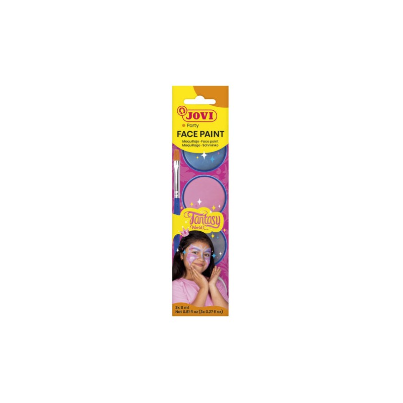 ADVENTURE ESTUCHE 3 BOTES 8ML MAQUILLAJE CREMA COLORES BLANCO, ROJO Y AZUL CLARO. INCLUYE ESPONJA DE MAQUILLAJE Y PINCEL PLANOEL MAQUILLAJE EN CREMA JOVI FACE PAINT, ES UN PRODUCTO BASE GRASO Y MUY FÁCIL DE APLICAR SIN NECESIDAD DE USAR AGUA.CON GRAN CAPACIDAD CUBRIENTE, ESTÁ DISPONIBLE EN 12 COLORES VIVOS Y BRILLANTES QUE SE PUEDEN MEZCLAR ENTRE SÍ.SE PRESENTA EN FORMATO BOTE QUE FACILITA LA INTRODUCCIÓN DE UNA ESPONJA PARA SU POSTERIOR APLICACIÓN. SU BASE GRASO EVITA QUE EL PRODUCTO SE SEQUE. SE ELIMINA FÁCILMENTE CON UNA TOALLITA SIN NECESIDAD DE AGUA Y JABÓN. SECA RÁPIDAMENTE SIN DEJAR SENSACIÓN GRASOSA.NO CONTIENE PARABENOS Y ESTÁ LIBRE DE LOS PRINCIPALES ALÉRGENOS.