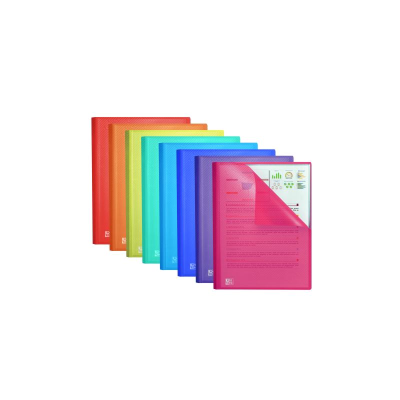 OXFORD URBAN CARPETA DE FUNDASA4 - Tapa Plástico - Soldadas - 100 Fundas - SurtidoOXFORD URBAN: el compañero ideal para tu organización diaria. Fabricada con plástico translúcido rígido, la gama de productos de archivo OXFORD URBAN está diseñada para la protección de tus documentos ya sea para para guardarlos en la escuela, la universidad o en tu casa. Su diseño está inspirado en contornos del laberinto OXFORD URBAN La carpeta de fundas soldadas OXFORD OXFORD URBAN está disponible en 100 fundas cristal que permiten una visibilidad clara de los documentos en el interior. El plástico translúcido de las tapas también permite identificar fácilmente el contenido. Fabricado en plástico translúcido está disponible en diferentes colores vivos a juego con los colores de la gama de cuadernos Oxford CLASSIC.