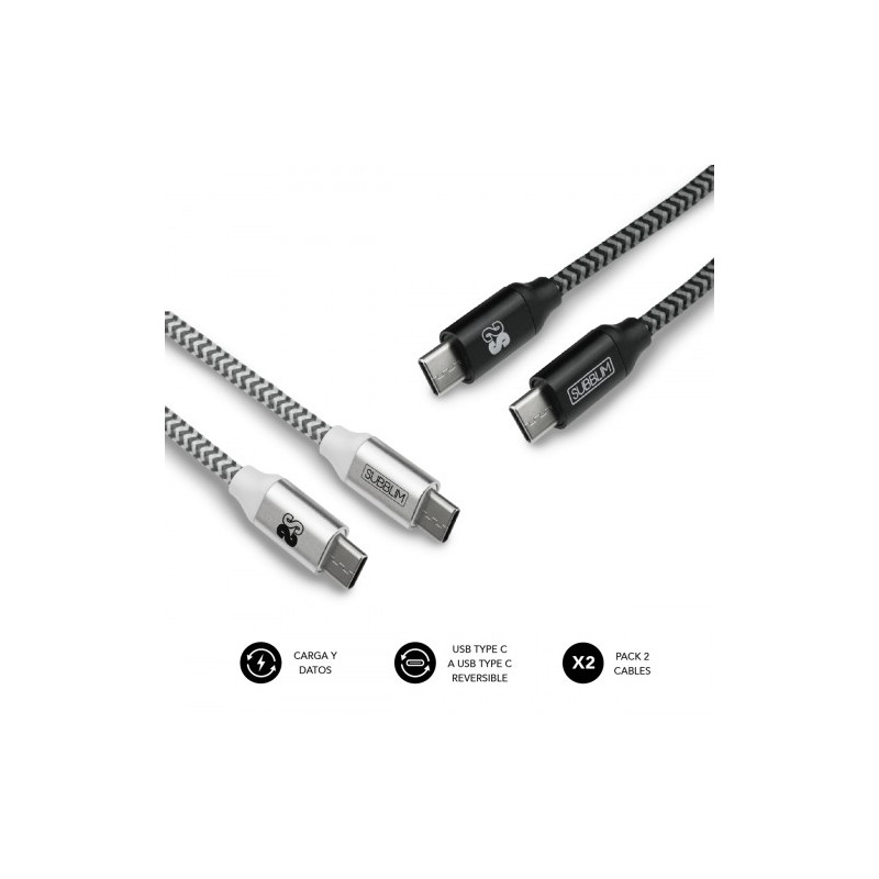 VERSATIL: CONECTORES REVERSIBLESLa nueva conexión Tipo C, ofrece versatilidad gracias a que su conector es reversible y aumenta la velocidad de transferencia, gracias al chip de control E-mark.CARGA Y SINCRONIZA TU DISPOSITIVOEl pack de cables de USB C a USB C metálicos te permiten conectar fácilmente tu dispositivo de última generación a un cargador u ordenador. Úsalo para cargar y sincronizar cualquier dispositivo provisto de un puerto Type C, incluyendo teléfonos, tablets y ordenadores a la más alta velocidad.UN ACCESORIO ELEGANTE Y CON ESTILOCon su acabado metálico mate y cubierta exterior trenzada este cable cuenta con un aspecto que es a la vez elegante y moderno. El pack incluye una cable de color plata combinado con blanco y otro en gris oscuro combinado con negro.DISEÑO DURADERODiseñado para soportar un uso intenso los cables de USB C a USB C con conectores de aluminio son idóneos para tu estilo de vida activo y móvil. Incluyen un organizador de cable para llevarlos siempre recogidos y protegidos. Además han sido sometidos a ensayos de dobladura de 90° hasta un total de 10.000 veces