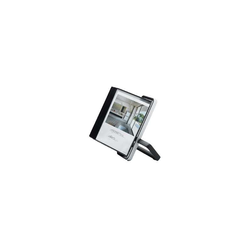 VEO displays, protége y organiza sus documentos importantes.VEO te facilita el tiempo, genera menos estrés y mayor eficiencia en el día a día.Una combinación de diseño y materiales de alta calidad…VEO se puede utilizer para cualquier tipo de información en papel que quiera ser resaltada.Increiblemente fácil de montar: solo con un clic, sin herramientas. Base en aleación de aluminio en acabado negro con acabado suave. Excelente estabilidad. Incluye 10 fundas con pivotes en polipropileno. Pivotes de acero.- Posibilidad de ampliarlo de 10 a 20 fundas añadiendo una unidad de pared. Las unidades de sobremesa pueden ser infinitamente extendidas, sólo tienes que añadir otra unidad de mesa y otra de pared al lado, así progresivamente.- El embalaje de VEO se convierte en una bonita caja. Además de ser útil no perjudica al medio ambiente. Fabricada en polipropileno reciclable. Con refuerzos de acero.- oficinas, recepciones, tiendas, áreas públicas…