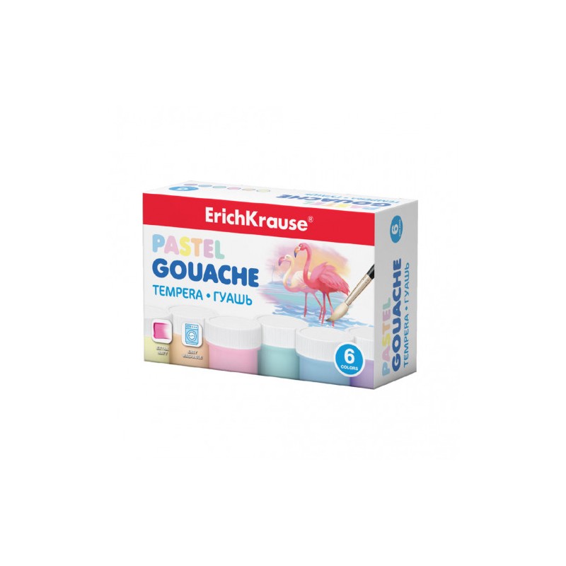 Erichkrause® pastel gouache es una oferta única en el mercado. Tonos pastel gouache particularmente mate, deposita sobre el papel una capa de color suave y aterciopelada. La gama de tonos pastel saturados encaja perfectamente entre sí y también complementa una amplia paleta de tonos brillantes y contrastantes de gouache ErichKrause®.