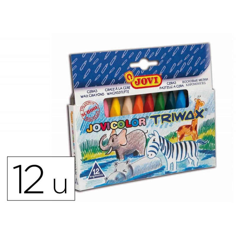 Ceras triangulares que ni manchan ni se rompen. De colores vivos y luminosos, su diseño triangular permite que se adapten perfectamente a la mano del niño y que no rueden.Permiten un trazo suave y homogéneo, y se deslizan muy bien sobre el papel, son muy agradables al rayar y no manchan las manos. Son de gran rendimiento, ya que todo el lápiz es mina y se les puede hacer punta con facilidad.Técnica TonalSe consigue trabajando siempre de menor a mayor intensidad de color. Las manchas de color se realizarán mediante trazos muy unidos e incluso superpuestos.Técnica LinealLos tonos de color se consiguen mediante la superposición de líneas cruzadas que forman tramas. El tramado será más tupido allí donde se desee un tono más intenso.Esgrafiado a la cera (o Grattage)Trabajaremos sobre un motivo realizado con la técnica tonal y colores claros o bien sobre una capa de líneas de diferentes colores a la cera. Recubriremos la totalidad del dibujo con una capa de cera de color oscuro. Con una lanceta o modelador en punta, rasparemos trazos que dejarán al descubierto los colores ocultos.Esgrafiado al jabónEl proceso es idéntico al esgrafiado a la cera sólo que en lugar de recubrir los colores con un color a la cera, lo haremos con una mezcla de témpera líquida y jabón líquido (en proporción 3 a 1 aproximadamente). Cuando la témpera esté seca, rascaremos los dibujos deseados que mostrarán los colores de la capa inferior.VirutasSi guardamos y clasificados por colores los restos que se desprenden al sacar punta a las ceras, podremos realizar composiciones a modo de mosaico con esas virutas. Para ello se unta con cola blanca la zona del dibujo a “colorear” y se espolvorea sobre ella las virutas del color elegido. Una vez seca la cola, se sacude todo para eliminar los restos de cera no pegados.Un lavado a mano con jabón en pastilla, es suficiente para eliminar las manchas de la ropa.