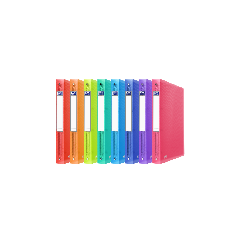 OXFORD URBAN CARPETA DE ANILLASA4 - Tapa plástico - 4 anillas de 30 mm - Lomo 40 mm - SurtidoOXFORD URBAN: el compañero ideal para tu organización diaria. Fabricada con plástico translúcido rígido, la gama de productos de archivo OXFORD URBAN está diseñada para la protección de tus documentos ya sea para para guardarlos en la escuela, la universidad o en tu casa. Su diseño está inspirado en contornos del laberinto OXFORD URBAN Esta carpeta de anillas OXFORD URBAN, con un mecanismo de 4 anillas, es perfecta para archivar tus documentos por su lomo de 40 mm que puede almacenar hasta 250 hojas. La identificación del contenido de los documentos es muy fácil gracias a la etiqueta identificativa del lomo y que el plástico de la carpeta es translúcido. Disponible con diferentes colores vivos a juego con los colores de la gama de cuadernos Oxford CLASSIC.