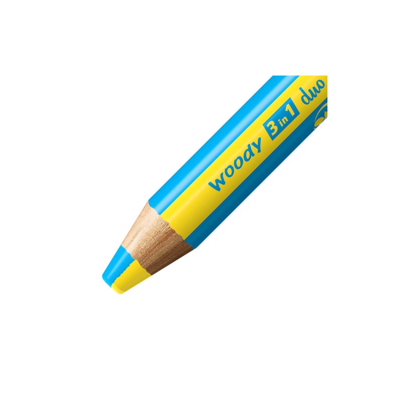 Estuche con 10 lápices de color multitalento STABILO woody 3 en 1 + sacapuntas. Lápiz de color, cera y acuarela, todo en uno. Fabricado con madera certificada 100% PEFC. Mina XXL. Ideal para grandes áreas y para casi cada técnica de pintura. Gracias a su grueso cuerpo es ideal para las manos de los niños. Mina anti-rotura, diámetro 10 mm. Trazos gruesos y suaves. Colores intensos, incluso en papel oscuro. También escribe sobre superficies como el crital, metal, etc... Están involucrados en una gestión responsable de los bosques. Evitan el uso de pesticidas y protegen las especies en peligro de extinción. Aplican sus ideas de acuerdo con los estándares ISO de 210 millones de hectáreas de bosques certificados.